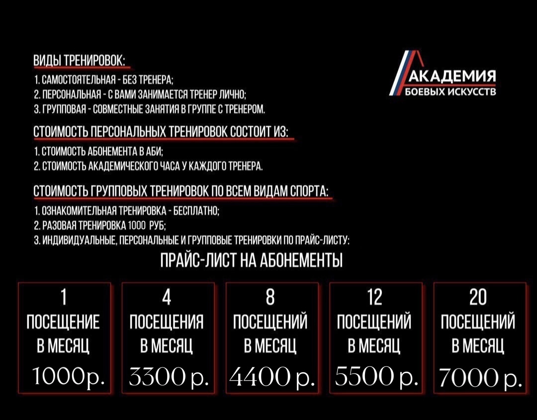 Абонементы Академии Боевых Искусств
